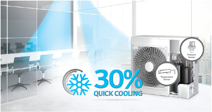 Hệ thống cảm biến thông minh Dàn nóng Multi LG Z2UQ18GFD0 (2.0 Hp) Inverter giúp máy mất ít thời gian để đạt được nhiệt độ mong muốn với khả năng làm mát nhanh hơn tới 30% cùng độ chính xác và ổn định cao.