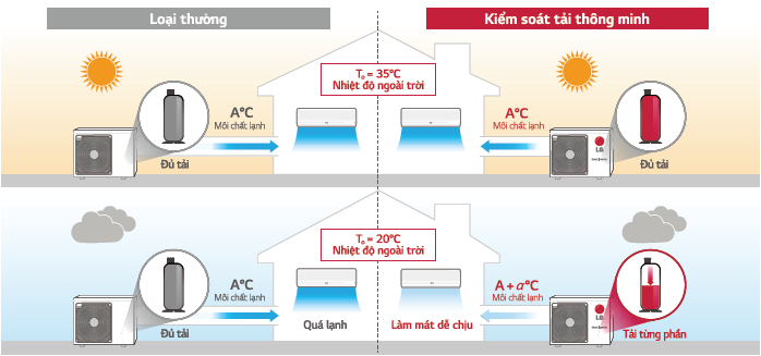 Dàn nóng Multi LG Z2UQ18GFD0 (2.0 Hp) Inverter Tự động điều khiển nhiệt độ môi chất lạnh theo nhiệt độ bên ngoài để tiết kiệm năng lượng.