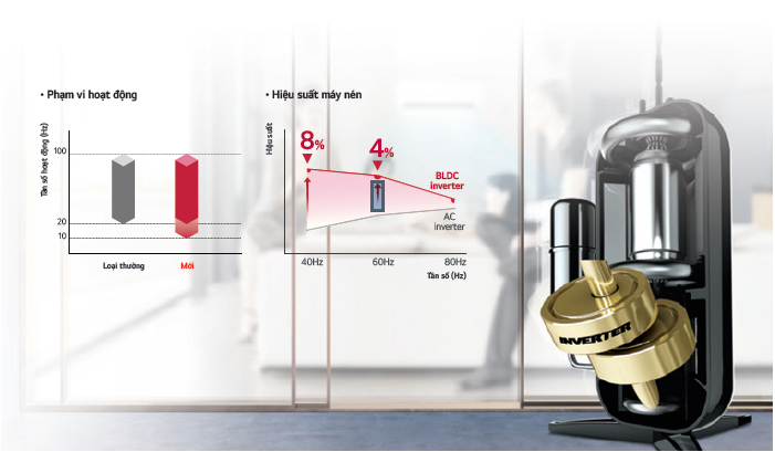 Dàn nóng Multi LG Z2UQ18GFD0 (2.0 Hp) Inverter được trang bị máy nén BLDC Inverter Twin Rotary có hiệu suất cao và độ tin cậy vượt trội. Có thể kiểm soát tốc độ hoạt động tùy thuộc vào tải lạnh vô cùng hiệu quả. Hiệu suất của máy nén đã được cải thiện. tối ưu so với dòng máy nén thông thường.