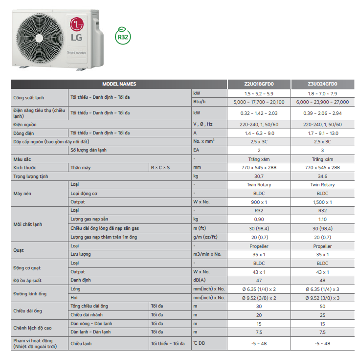 Dàn nóng Multi LG Z2UQ18GFD0 (2.0 Hp) Inverter Lớp phủ Gold Fin hạn chế ăn mòn độc quyền của LG