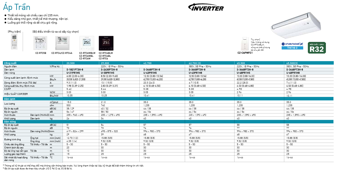 Chi tiết Máy lạnh áp trần Panasonic S-3448PT3H-8/U-48PR1H5 Inverter 5.5 HP - 1 pha