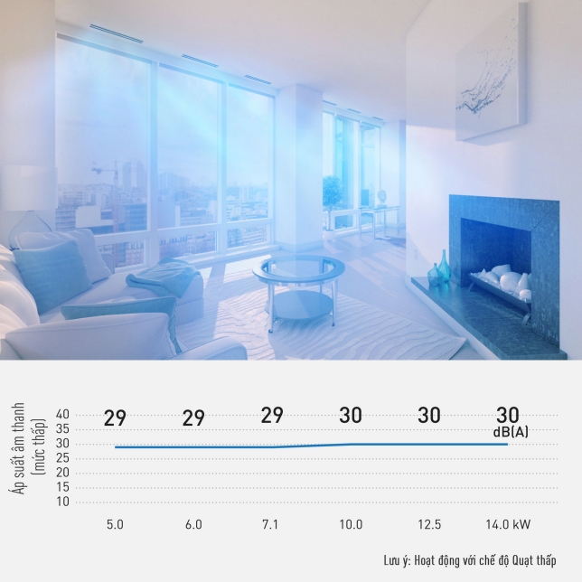 Nổi bật với thiết kế siêu mỏng chỉ 250 mm, giúp tối ưu không gian lắp đặt. Dù mỏng nhẹ, máy cung cấp áp suất tĩnh (ESP) mạnh mẽ lên đến 150 Pa và vận hành cực êm ái với độ ồn thấp nhất thị trường, Độ ồn áp suất thấp 29 dB(A), chỉ bằng tiếng nói thầm (1m). Lý tưởng cho không gian yên tĩnh và thư giãn, ví dụ như hành lang khách sạn và phòng khách, với hiệu suất êm ái vượt trội.