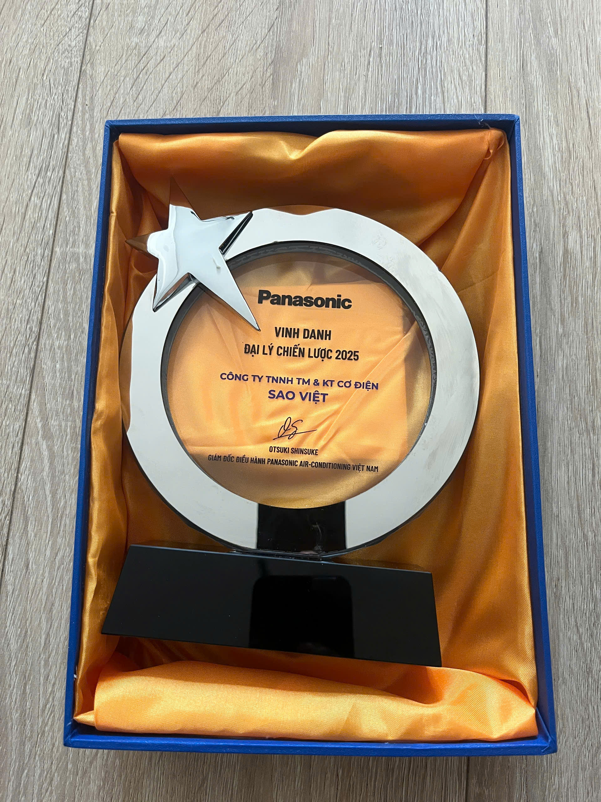 Chúng tôi vô cùng tự hào khi chính thức được vinh danh là Đại lý Chiến lược năm 2025 của Panasonic. Đây là minh chứng rõ nét cho sự nỗ lực không ngừng nghỉ của tập thể Sao Việt nhằm nâng cao chất lượng dịch vụ, mang đến những giải pháp tối ưu và sự tận tâm nhất cho khách hàng. Giải thưởng này cũng chính là sự ghi nhận quý báu cho niềm tin yêu mà Quý khách hàng đã dành trọn cho Sao Việt.